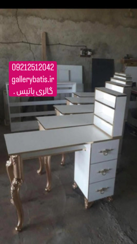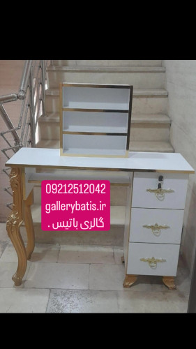 میزناخن سفید طلایی با کشو قفلدار واستندلاک